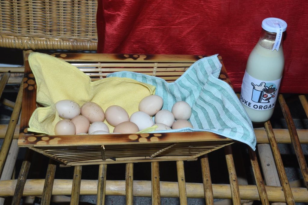 At DUKE ORGANYX EGGS are sourced from native Indian hens that have hatched and have been growing on DUKE FARMS. These hens are free range roaming freely on the lush pastures of DUKE FARMS unlike commercially raised hens kept in cages. They interact with other livestock and are given individual attention especially by SJK to whom they are part of family.